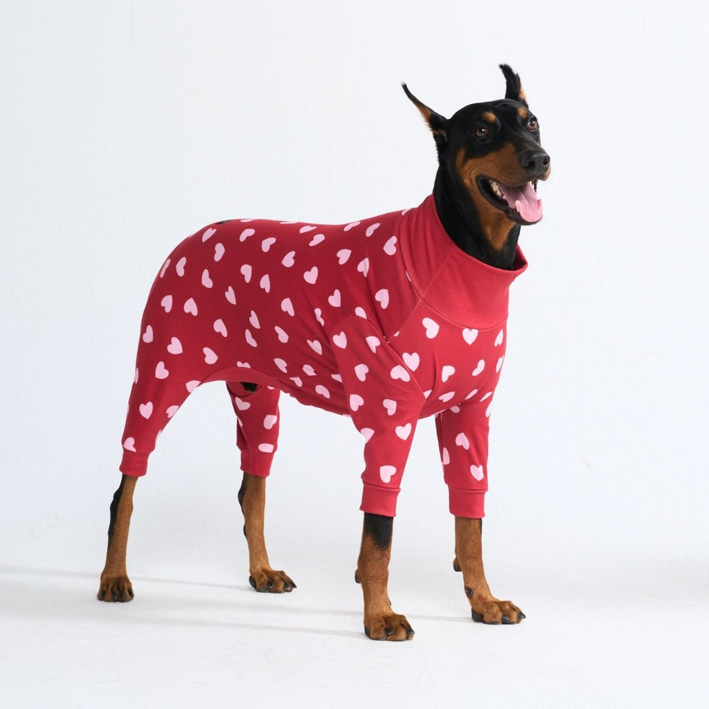 Dog Pajama - Red Hearts
